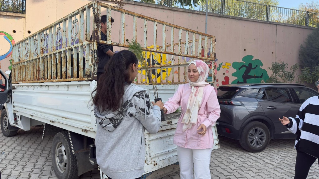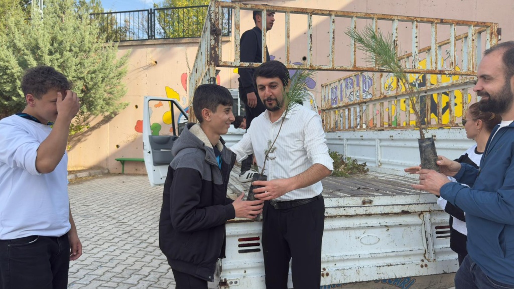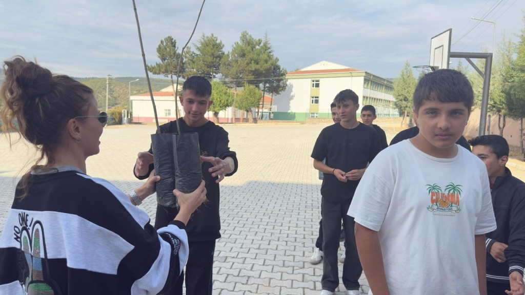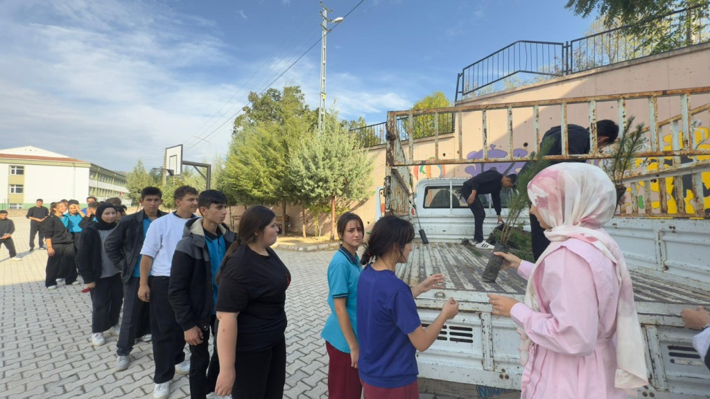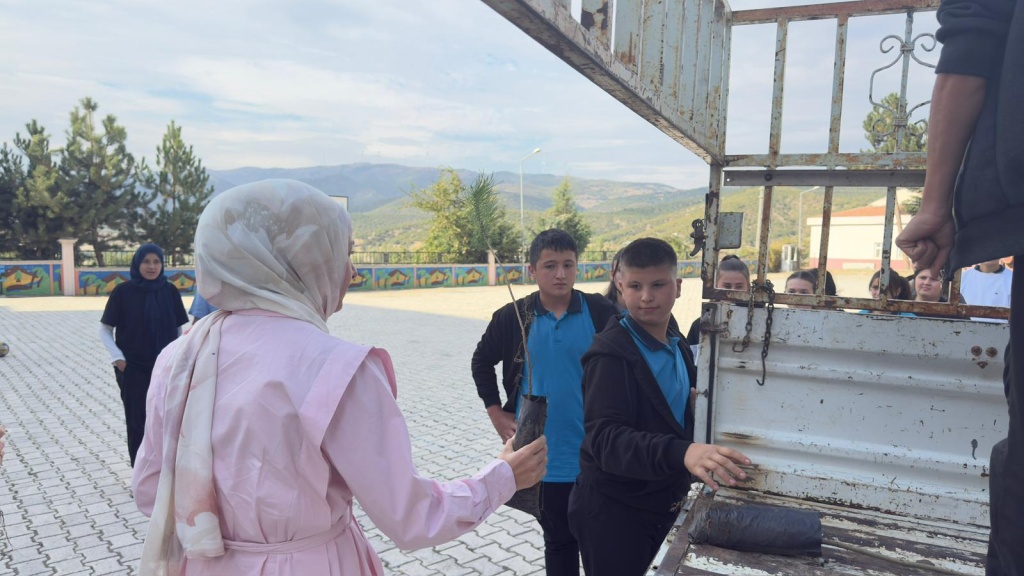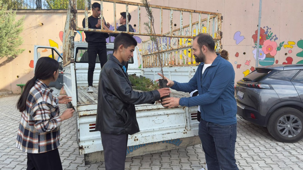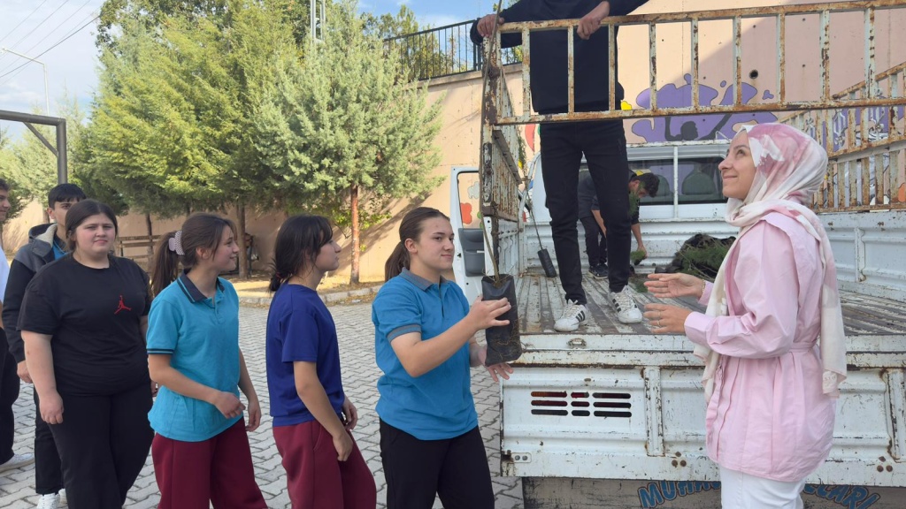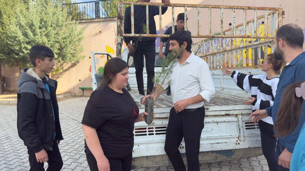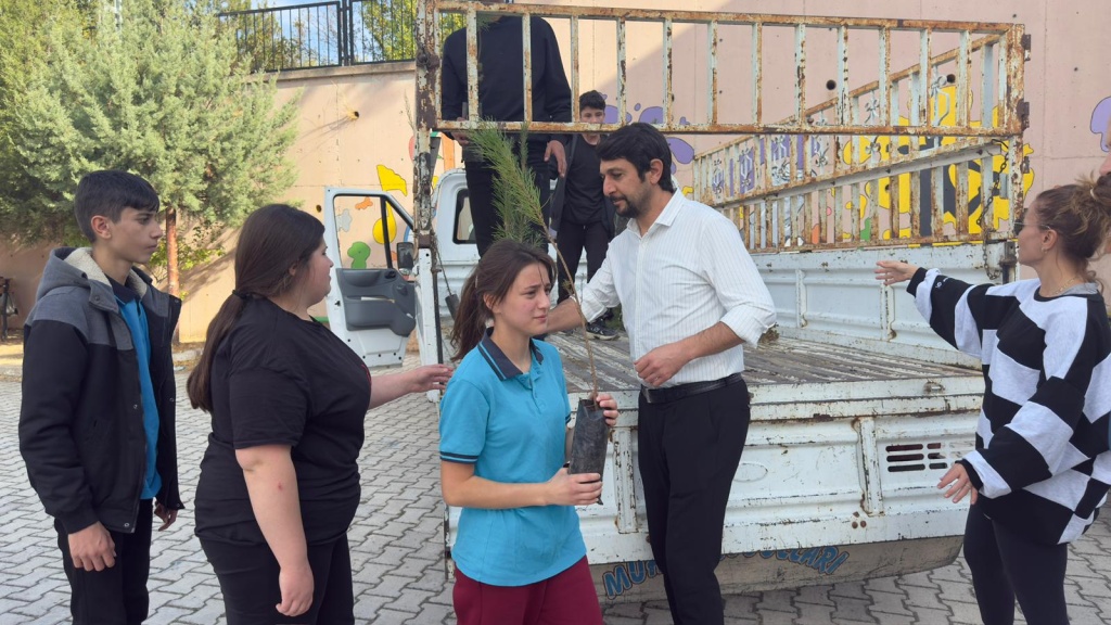 Milli Eğitim Bakanlığı tarafından yürütülen “Yeşil Vatan - Benim Okulum Geleceğe Çare” projesi kapsamında iklim değişikliği etkilerini azaltmak için öğrencilere fidan dağıtımı gerçekleştirildi.